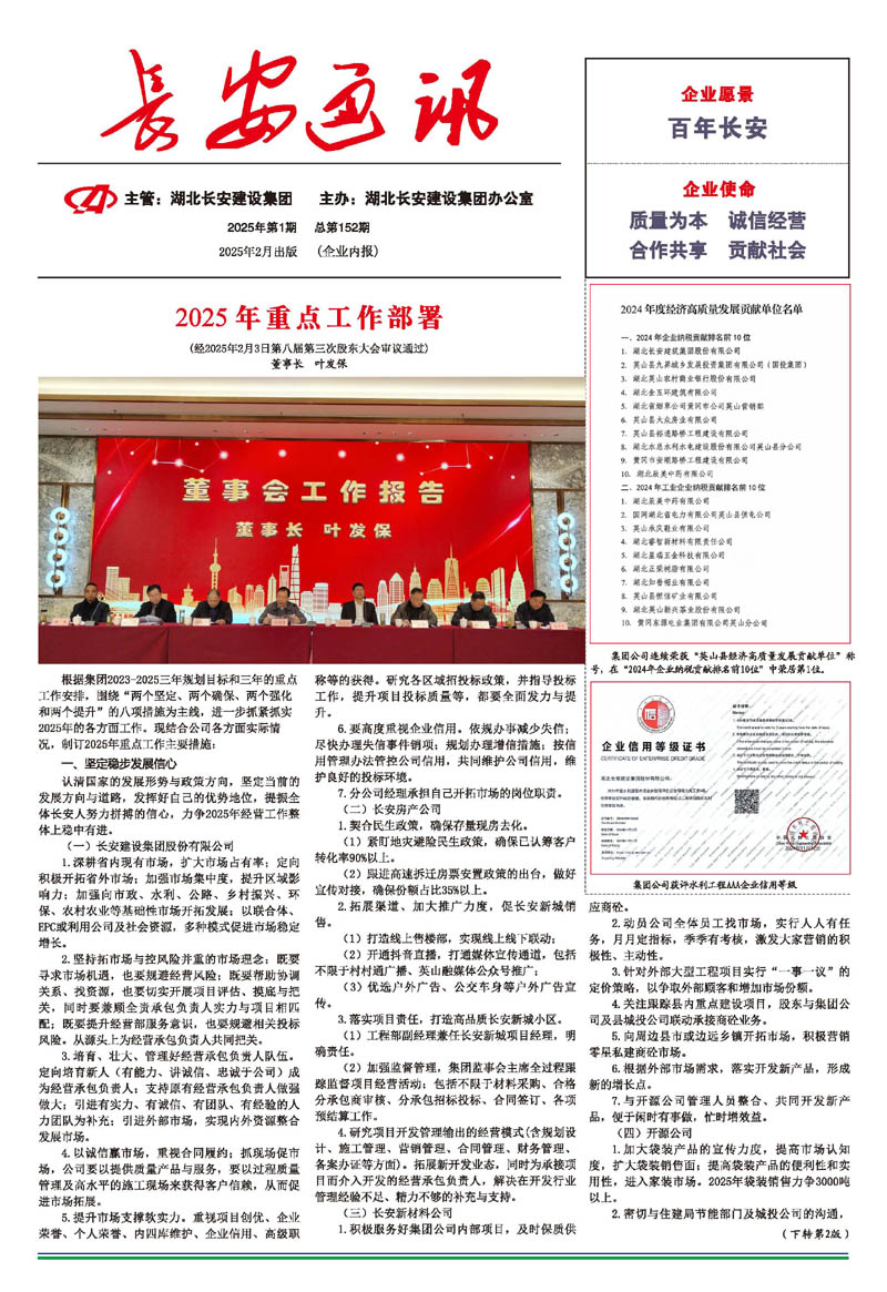 • 2025-11-03 段衛(wèi)昌同志當(dāng)選為湖北長安建設(shè)集團(tuán)股份有限公司第九屆董事長