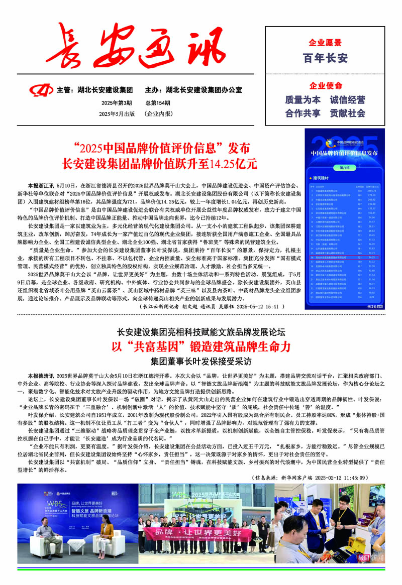 • 2025-05-13 湖北長安建設(shè)集團(tuán)亮相科技賦能文旅品牌發(fā)展論壇: 以“共富基因”鍛造建筑品牌生命力